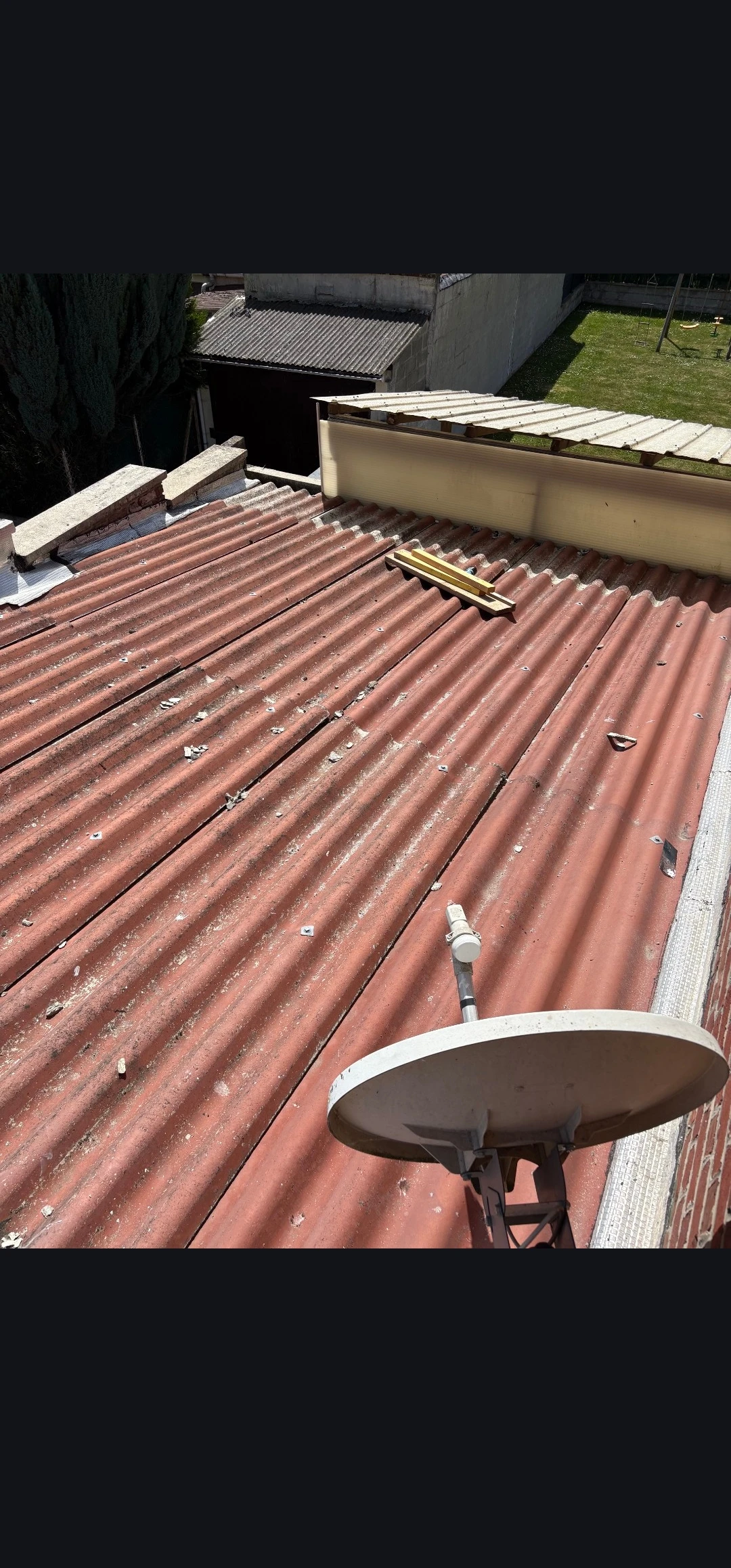 Lors de ce travail réalisé sur toiture garage, la couverture existante était composée de tôles fibro amiante, un matériau ancien nécessitant un traitement spécifique. L’équipe de Couverture Lemoine a assuré la dépose de toiture fibro amiante avec toutes les précautions nécessaires, conformément aux règles de sécurité en vigueur. Le remplacement de tôles fibro amiante a ensuite été effectué par la pose de tôles bac acier isolée 400mm, une solution moderne offrant à la fois une excellente isolation thermique, une bonne isolation phonique et une grande résistance aux intempéries.