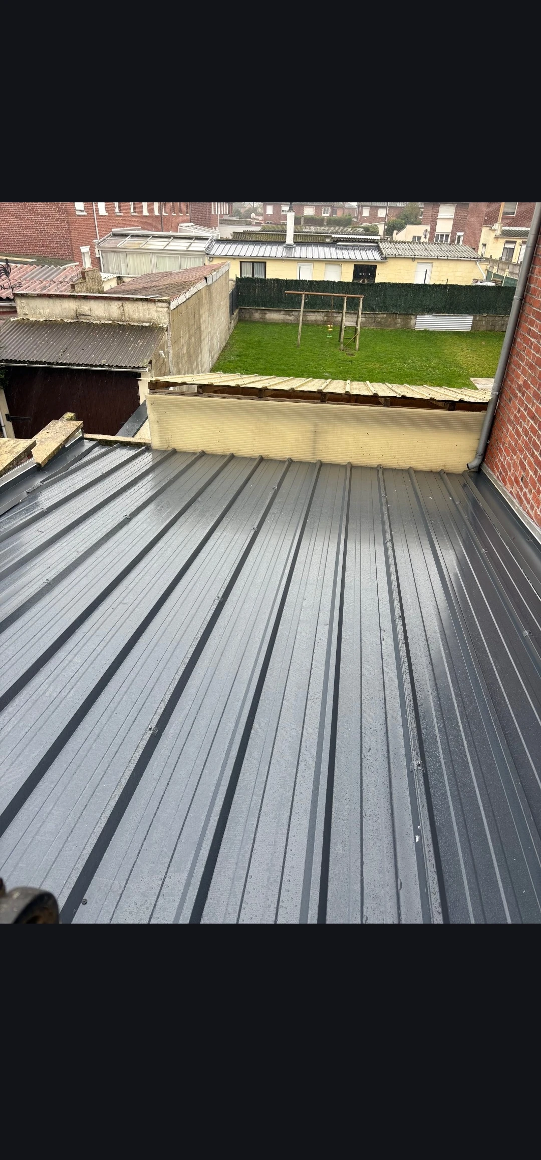 La pose de bac acier isolé permet d’améliorer la protection de la toiture, de renforcer l’étanchéité toiture et de prolonger la durée de vie du garage. Le choix du coloris RAL 7016 gris anthracite apporte une touche contemporaine et valorise l’aspect extérieur du bâtiment. Ce coloris est particulièrement apprécié pour les projets de rénovation toiture garage et de couverture bac acier, car il s’intègre harmonieusement à tous les styles d’habitation.